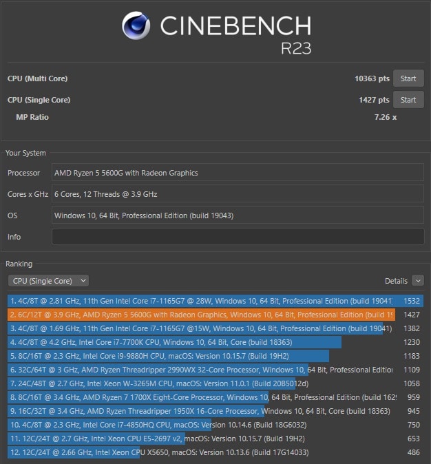 AMD Ryzen 5 5600G Review, Cinebench R23, GamersRD