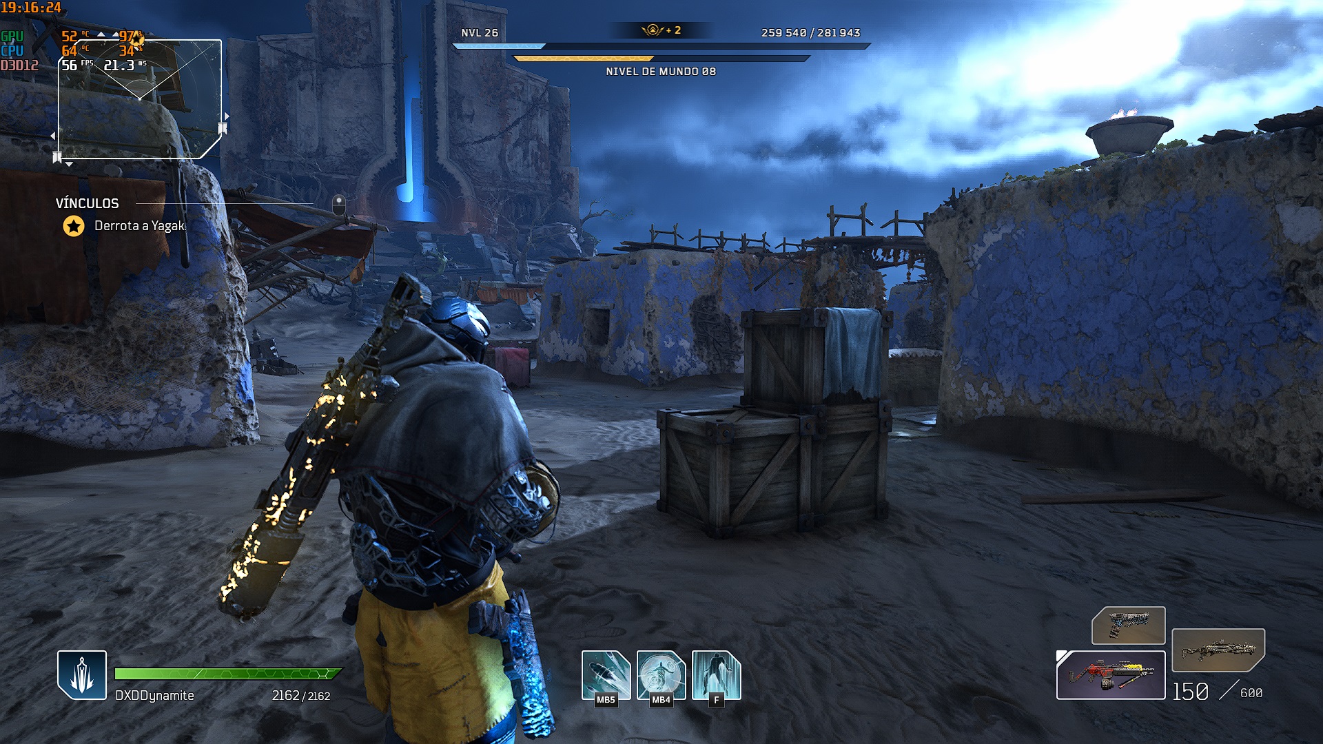 En Outriders los resultados fueron excelentes porque para un juego que fue lanzado no hace mucho el rendimiento fue increíble ya que con gráficos en medio la jugabilidad bastante fluida logrando entre 41 FPS mínimos y 47 máximo. Sin embargo, cuando cambiamos la configuración de gaticos de medio a bajo logramos tener aún más fluidez y ejecutar este juego a 56 FPS máximo.