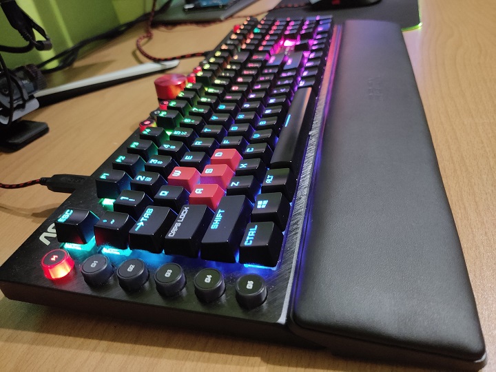 N-Key (Anti-ghosting): Otro punto fuerte que tiene este teclado que me tiene fascinado es la tecnología N-KEY lo cual impide que se mezclen los comandos (Anti-ghosting) cuando pulsamos varias teclas rápidamente o al mismo tiempo, esto es algo muy importante a la hora de jugar juegos que llevan un ritmo caótico y tenemos que accionar rápidamente ya que esta tecnología permite que cada click se registre independientemente. Después de jugar Apex Legends y Warzone por varias horas pude notar cierta fluidez en los movimientos que no tenía con modelos anteriores, por ejemplo cuando era sorprendido por algún enemigo y tenía que realizar muchos movimientos en poco tiempo esto me ayudaba a que el personaje responda debidamente en base a los comandos que introducía. Para aquellos que no están familiarizados, esto pasa mucho cuando intentas hacer varios movimientos y notas que de un momento a otro tu personaje se detiene o no hace lo que intentabas hacer, esto se debe a la limitación de registro de tu teclado en este caso.