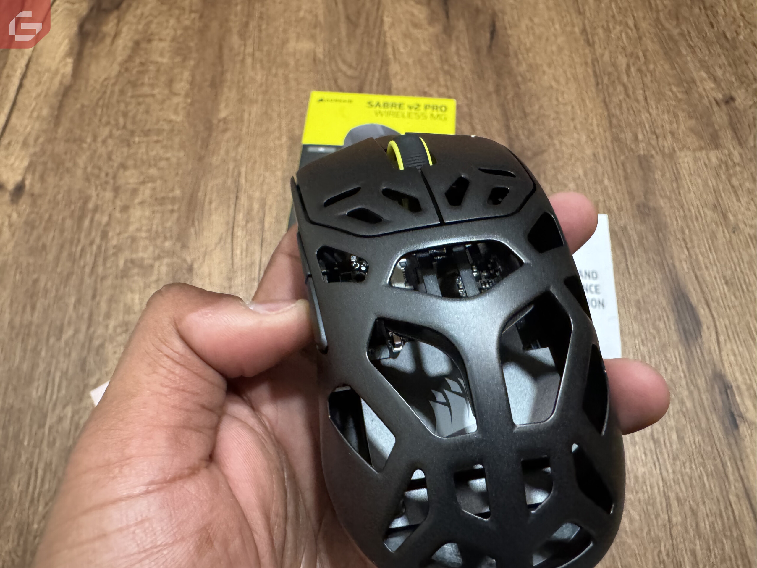 Si empezamos por lo más básico nos encontramos con un mouse gaming con huecos muy atractivos y aunque podemos ver todo por dentro no lo deja completo al desnudo ya que este cuenta con un material de fabricación de aleación de magnesio, convirtiéndolo en un mouse gaming que pesa unos 56 gramos.