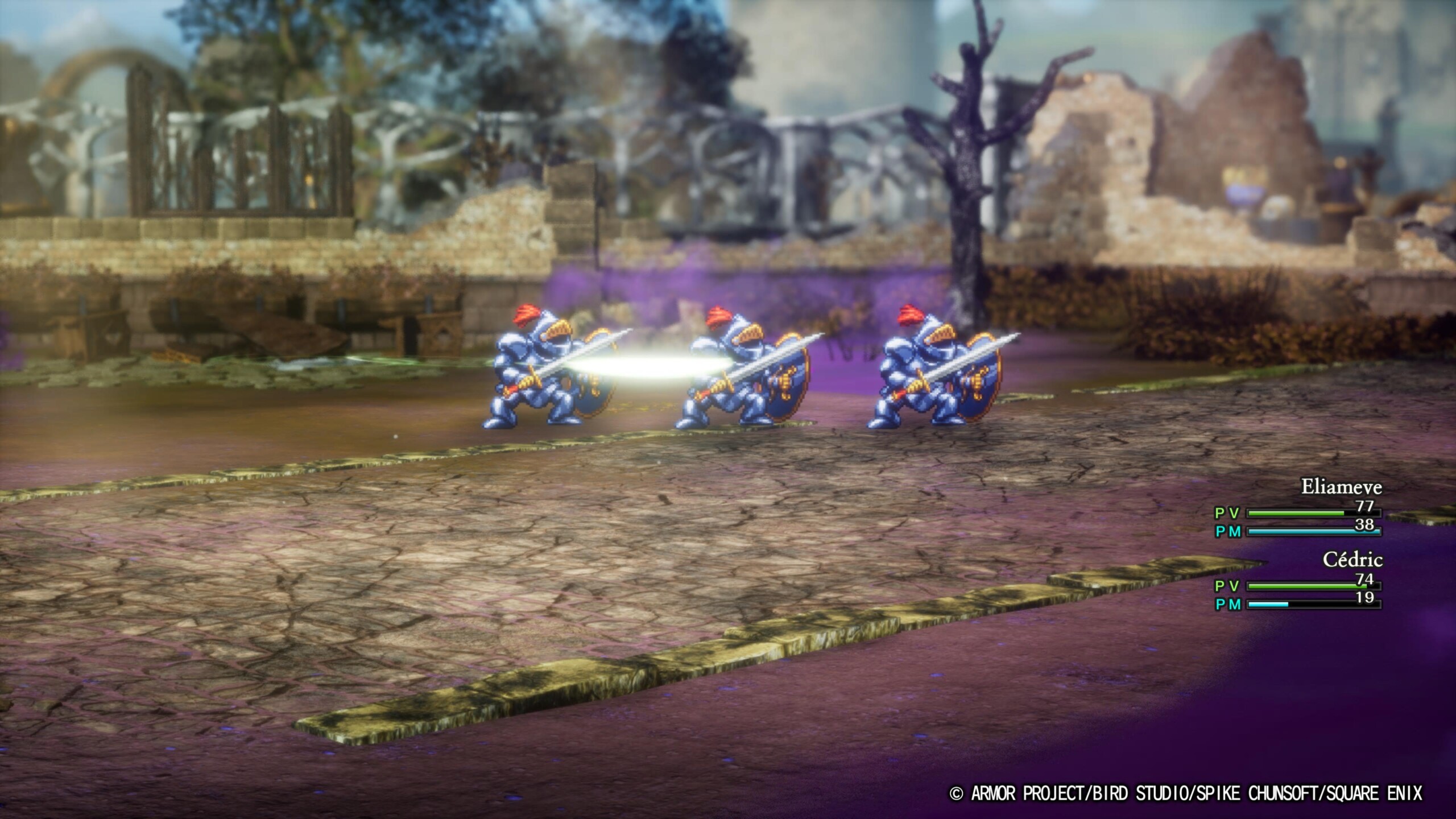 Particularmente, me encanta el estilo artístico desde el primer Octopath Traveler, y aunque este remake no tiene el mismo estilo per se, sigue siendo encantador. Tenemos unos sprites de personajes más detallados, sobre todo en las batallas, sin perder la esencia clásica. Los efectos de iluminación presentan sombras dinámicas que se comportan tal como un juego en 3D. Tiene dos opciones de gráficos en Modo Rendimiento y Modo Gráfico, y por primera vez, elegí el modo gráfico porque se apega más al estilo clásico de los juegos originales.