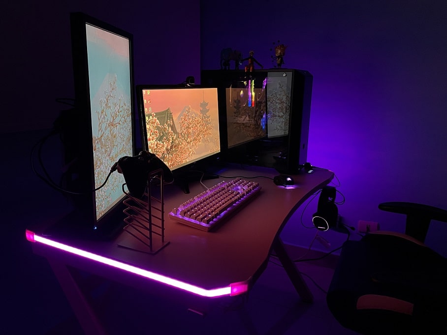 Una vez armada la mesa es realmente hermosa. Sus laterales poseen integrados luces RGB los cuales pueden cambiar entre colores y patrones por medio de un panel integrado que tiene en la esquina inferior derecha. Lo mejor de todo es que resulta supersencillo de instalar, solo debes conectar los cables de la base y la salida USB conectarla a una fuente de energía ya sea a un enchufe con una cajita (NO trae cajita) o directamente a tu PC, laptop, PS4 o Xbox y listo tienes una mesa gamer lista y servida para sumergirte en un ambiente gamer que será digno de admirar.