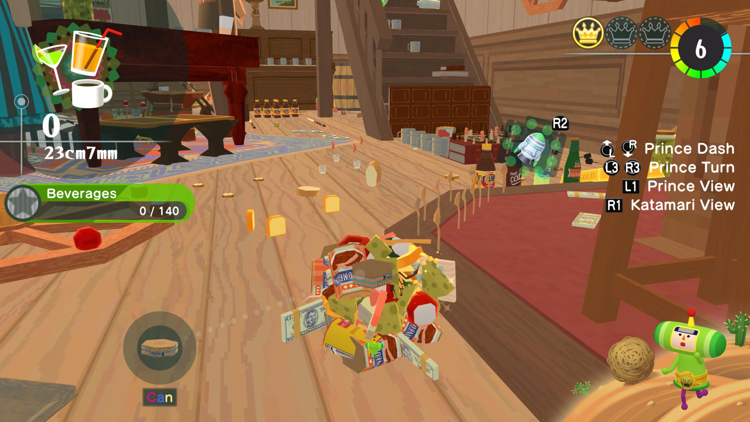 El objetivo es el mismo, recolectar cuanto objeto, personas, animales o cualquier cosa se nos pase por el frente, siempre y cuando no sobrepase el tamaño de la esfera, que va a creciendo a medida que juntamos cosas. Ahora se ha incluido varios giros rápidos, la posibilidad de escalar paredes de baja altura, entre otras que facilitan los recorridos. Además de recolectar, debemos conseguir una serie de coleccionables en forma de tres coronas de oro en cada nivel, y nuestros primos (uno por nivel) que luego podemos usar como avatares.