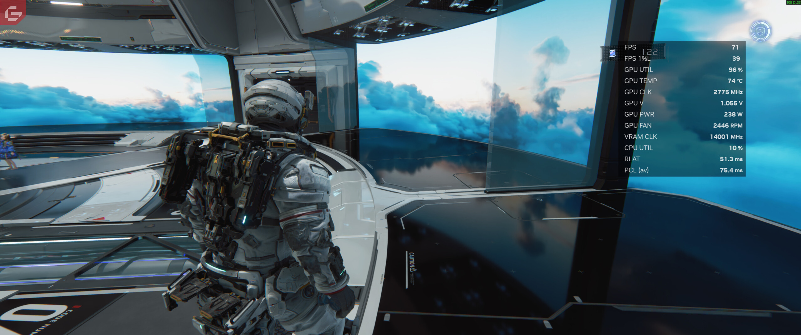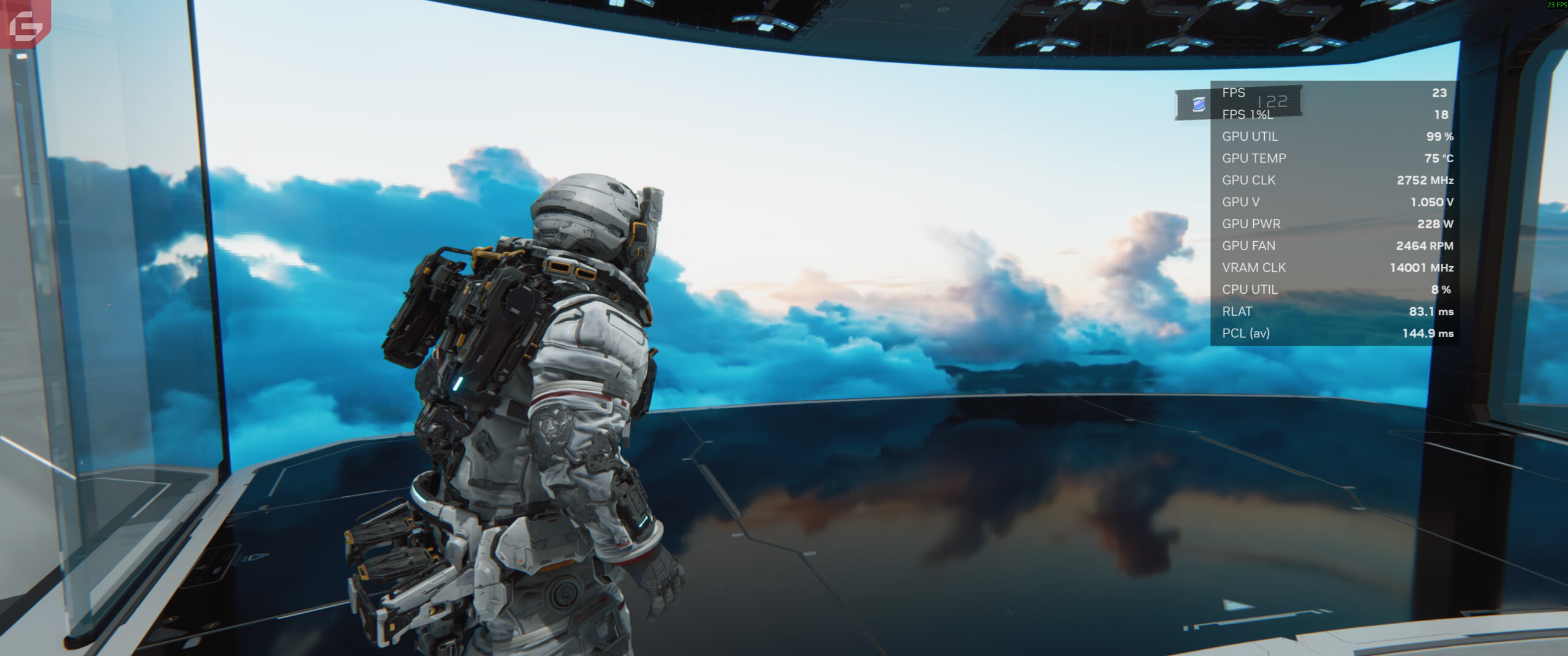 Se puede ver el salto de 60 FPS promedio con MFG a 2X a 71 FPS con MFG a 3X y el asombroso valor de 137 FPS cuando ponemos el MFG a 4X. Si se fijan esos reflejos se ven increíbles y para mi 2X es más que suficiente para experimentar todo sin sacrificar ningún tema visual aunque en 3X mis ojos no pudieron apreciar ningún tipo de cambio, básicamente para mí todo se ve igual.