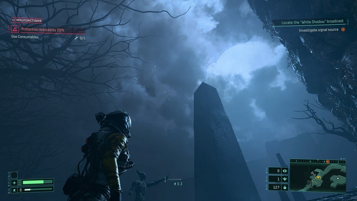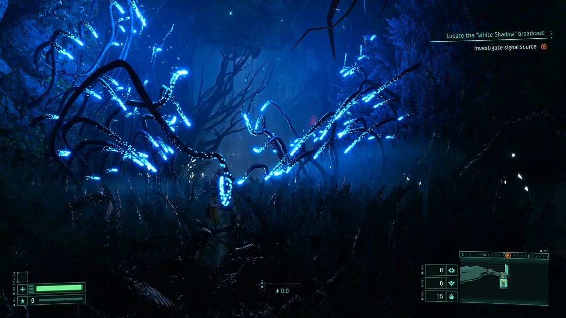 Pasando al aspecto gráfico, el juego se ejecuta a una resolución de 4K y 60 cuadros por segundo. Actualmente de los juegos que han salido para PS5 este es el que mejor a nivel gráfico ya que aprovecha en todo momento la potencia de PS5 y todas sus funciones. Los ambientes y detalles del juego están bien diseñados y llenos de hermosos ambientes oscuros. En ocasiones al momento de la exploración nos topamos con plantas alienígenas brillantes donde muestran un colorido hermoso con unos efectos impresionantes. También, no puedo dejar de mencionar la banda sonora del juego que en todo momento hace especial todos los combates del juego e incluso en los momentos de incertidumbre en buscas de respuestas.