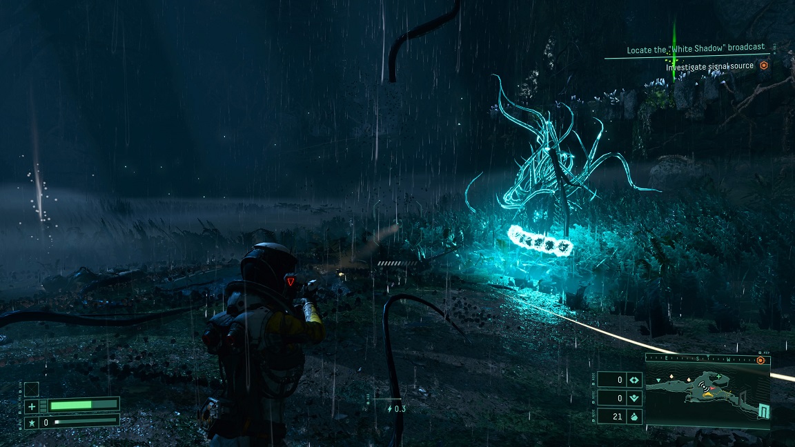 Sin embargo, donde Returnal se roba el show es en todo lo que hace el control DualSense y su retroalimentación háptica avanzada combinados con el audio espacial 3D. Tuve la oportunidad de jugarlo con un sistema de audio surround compatible con el audio 3D de PS5 y puedo decirles que esto es algo increíble la combinación de los audios junto a DualSense. El control emite un sonido fenomenal con unos efectos dentro de toda la acción que brinda el juego y hasta en todos los movimientos que tendrás que realizar mientras exploras el mundo alienígena en todo momento. Esto también viene mezclado con las armas que brinda el juego ya que forman un papel importante a la hora de todo combate y DualSense hace un papel extraordinario en esto ya que desde el primer momento que inicias la aventura en Returnal te das cuenta que este juego saca todo el provecho de la tecnología que brinda DualSense.
