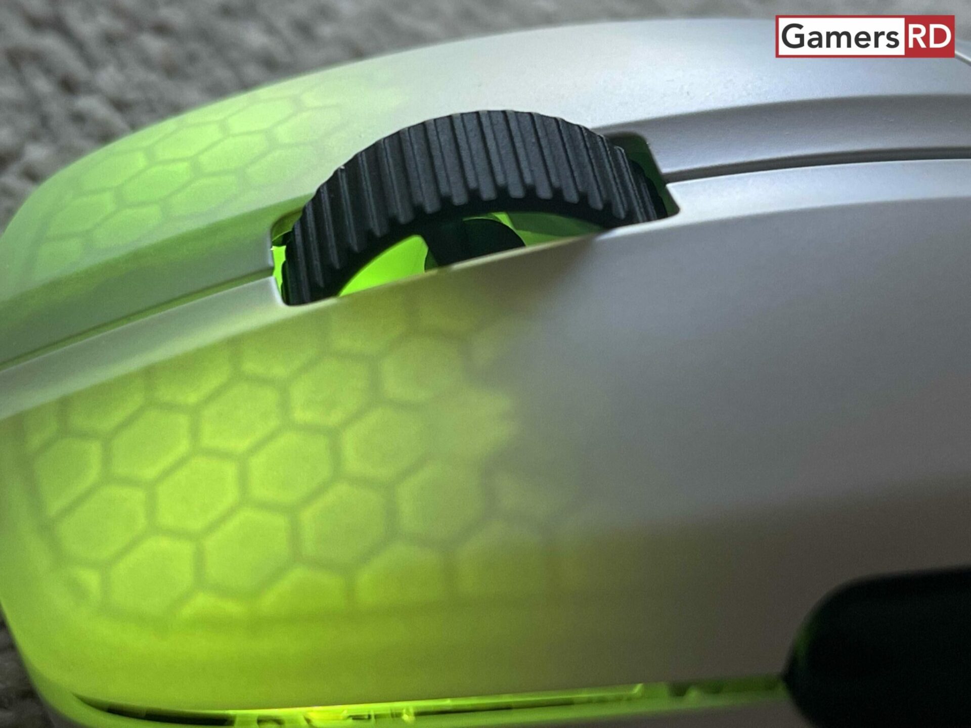 Una de las cosas que me gusto mucho en este nuevo ROCCAT Kone Pro Air es la rueda “Titan Wheel Pro” muchos mouse traen una rueda robusta e incluso incómoda. ROCCAT pensó mucho en los jugadores para crear un mouse gaming cómodo en todos los sentidos. La rueda está fabricada en aluminio macizo, la Titan Wheel Pro es otra maravilla de la ingeniería de precisión de ROCCAT. Suave pero fuerte, el Titan Wheel Pro tiene un desplazamiento satisfactorio y un clic táctil. La aleación se adapta rápidamente a la temperatura de su dedo, lo que lo hace increíblemente cómodo y envolvente. La rueda de este mouse es increíblemente cómoda y con un agarre maravilloso, no importa si la mueves hacia arriba o abajo ya que es muy ligera y mantiene su ritmo mientras la usamos más y más.