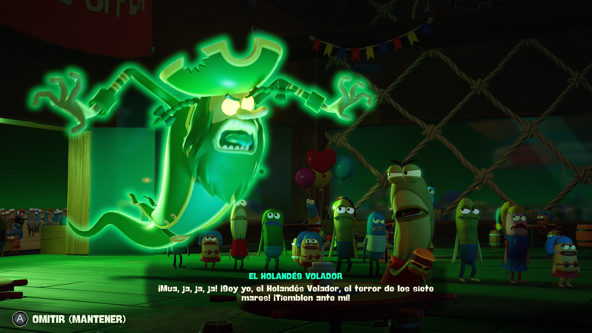 Tras una serie de discusiones con Neptuno, el Holandés se enfurece y estalla en una verde y lumínica explosión que resquebraja la zona y pone a flotar el establecimiento. Ahora nuestro esponjoso héroe, debe unir fuerzas con su mejor amigo para detener a los fantasmas ambulantes que han aparecido por toda la ciudad. Ciertamente, aunque la trama no es para echar cohetes, tiene el tono de humor que caracteriza la serie de TV, con situaciones absurdas y personajes entrañables.