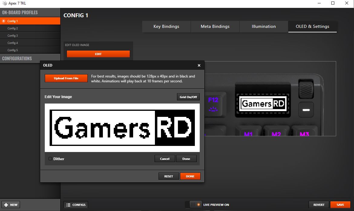 Sumando un aporte muy positivo a esto, el SteelSeries Apex 7 TKL tiene teclas de control de medios dedicadas, y todas las teclas son macro programables directamente en el teclado o con el software SteelSeries Engine. La rueda controla los controles de volumen y proporciona navegación para la pantalla OLED “128×40” del teclado mientras se mantiene presionado el botón de menú. Esta pantalla OLED le permite cambiar configuraciones y perfiles sin minimizar los juegos, o puede personalizarla en ciertos juegos para mostrar información como las proporciones K / D y entre otras cosas más, también podrás colocarle un logo deseado o inclusive una imagen JPG o GIF. Pero esto no es todo, también puedes programar la pantalla para ver la temperatura y consumo de tu CPU, GPU, Memoria RAM y más! Esto realmente es algo que se le puede sacar mucho beneficio a la hora de monitorear tu PC y sus componentes.