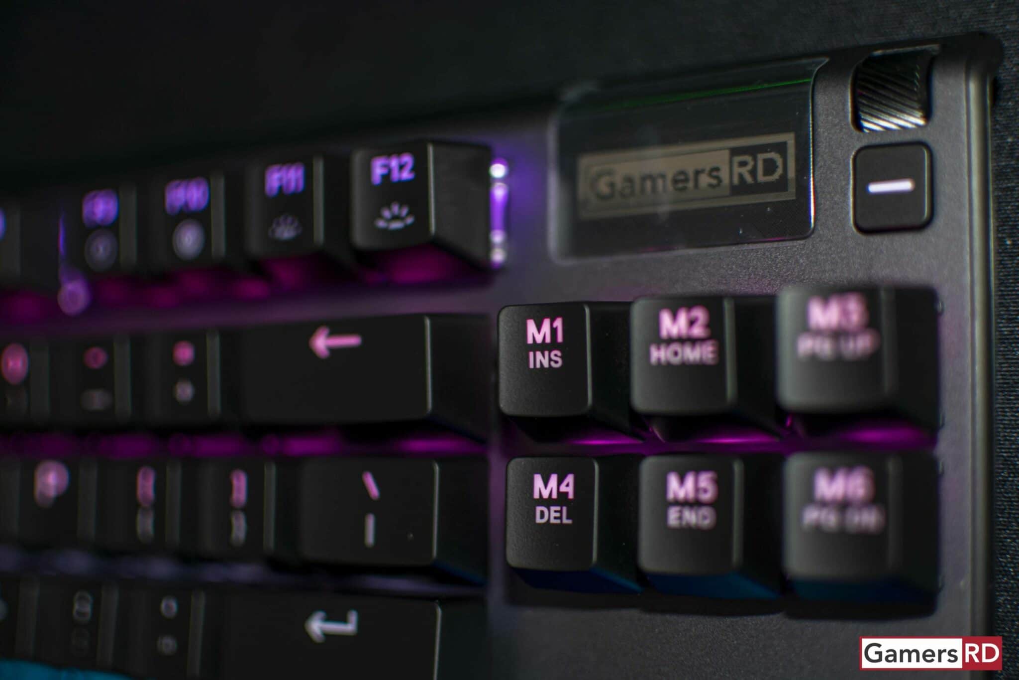 Esta versión tiene interruptores mecánicos SteelSeries Red que se sienten muy suaves, las teclas son estables y tienen un espacio bastante estándar, en general, estos interruptores se sienten livianos para escribir y no deberían causar fatiga, incluso cuando se escribe durante períodos prolongados, pero pueden sentirse demasiado blandos para algunos usuarios que no están acostumbrados a los teclados mecánicos de este tipo. Los interruptores Red de nuestra de este teclado son un poco ruidosos y realmente le dan ese toque clásico de un teclado mecánico gaming y sobre todo lo más importante es que este teclado tiene una latencia excelente y es muy poco probable que la mayoría de las personas noten algún tipo de retraso. El SteelSeries Apex 7 TKL también equipado de un puerto de paso USB que se ilumina en blanco. En otro toque agradable, los canales en la parte inferior del chasis del teclado ayudan con la administración de cables. Estos túneles están diseñados para sujetar el cable grueso del teclado y hacer que salga por el borde posterior del teclado donde lo desee, pero también se pueden usar para ayudar a enrutar el cable para cualquier dispositivo que conecte al puerto de paso USB.