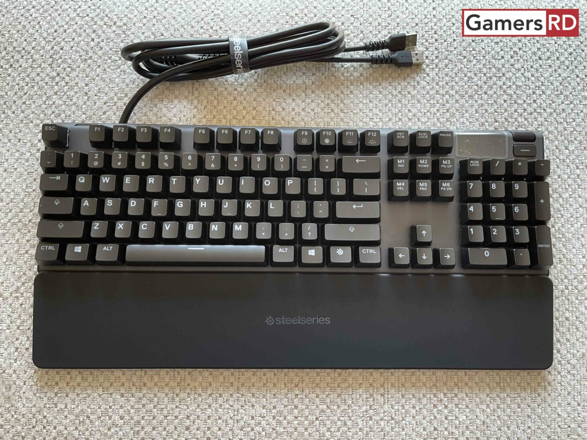 La calidad de construcción del SteelSeries Apex Pro es increíble. De los teclados mecánicos que he tenido la oportunidad de probar este se ha ganado el trono. Tiene un cuerpo de aluminio que se siente muy sólido. Viene con un reposamuñecas magnético que está cubierto por un revestimiento de goma aunque debemos de tener cuidado con el polvo ya que este reposamuñecas es fácil de atraerlo. Un punto muy importante es que muchos de los teclados mecánicos del mercado mayormente son muy grandes, pero el SteelSeries Apex Pro viene con una tamaño compacto y agradable para cualquier jugador que busque un teclado mecánico de calidad y que no arruine su setup gaming. Su gran diseño es de admirar, ya que desde que estamos escribiendo sentimos su gran ergonomía y acabado de calidad mientras le damos más horas de uso.