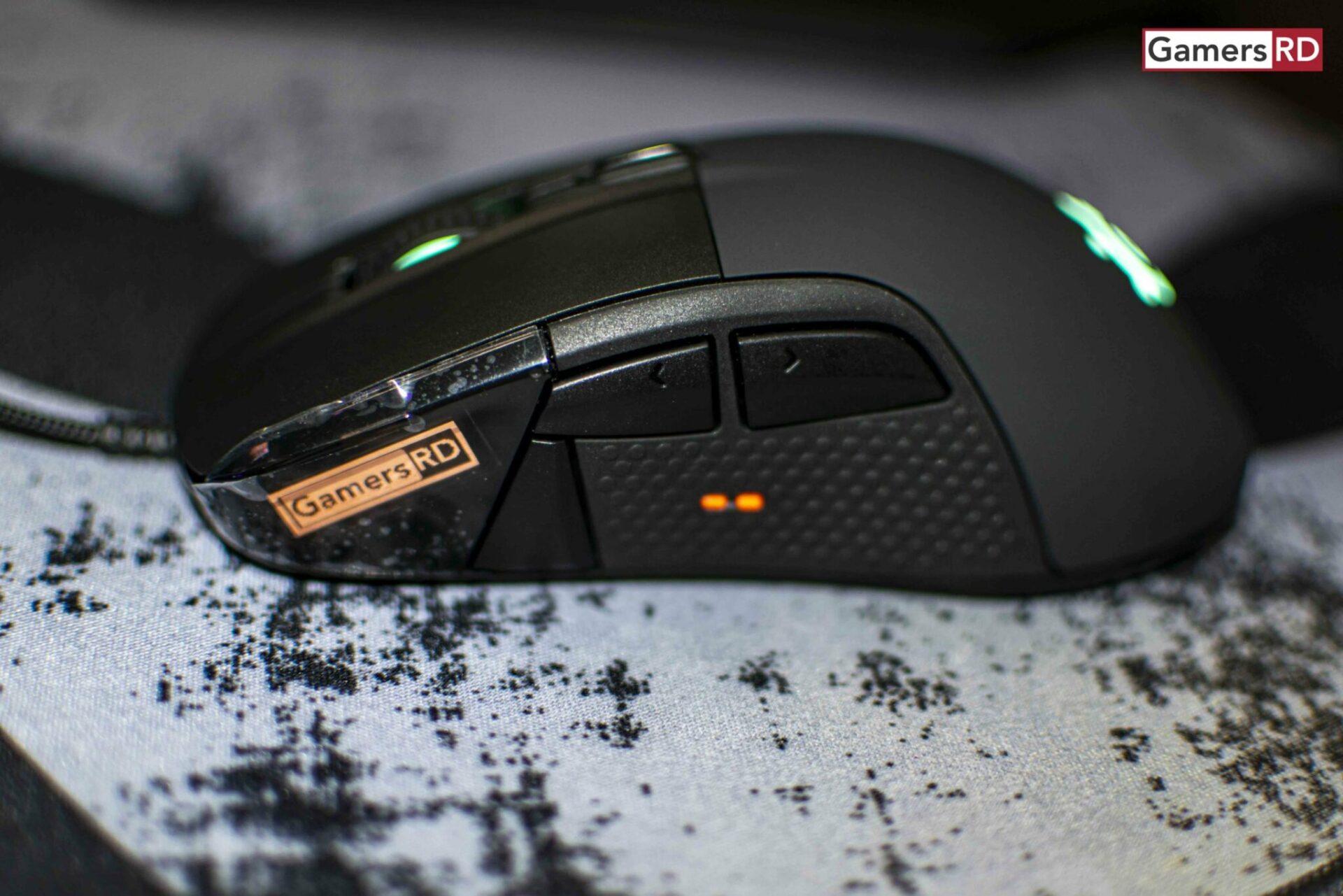 En esta ocasión revisaré uno de los mouse gaming preferido por los gamers, el SteelSeries Rival 710. Es un mouse con cable y siete botones disponibles para configurarlos a su gusto. En la parte superior, tiene botones de clic izquierdo y derecho, una rueda de desplazamiento en la que se puede hacer clic y un botón adicional justo debajo, que por defecto cambia entre dos configuraciones de resolución. Este mouse gaming tiene agarres de goma en el lateral y presenta un diseño FPS más típico con tres botones laterales. Cuenta con iluminación RGB en la rueda de desplazamiento y el logotipo situado en la parte trasera del mouse.