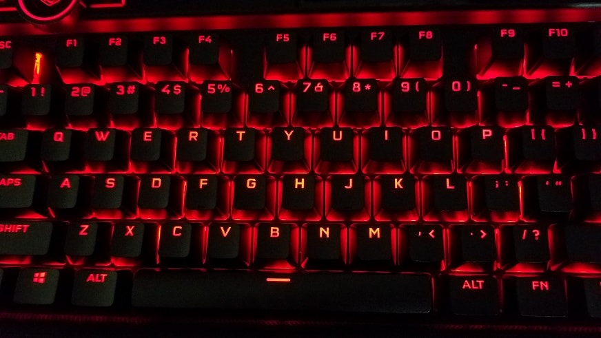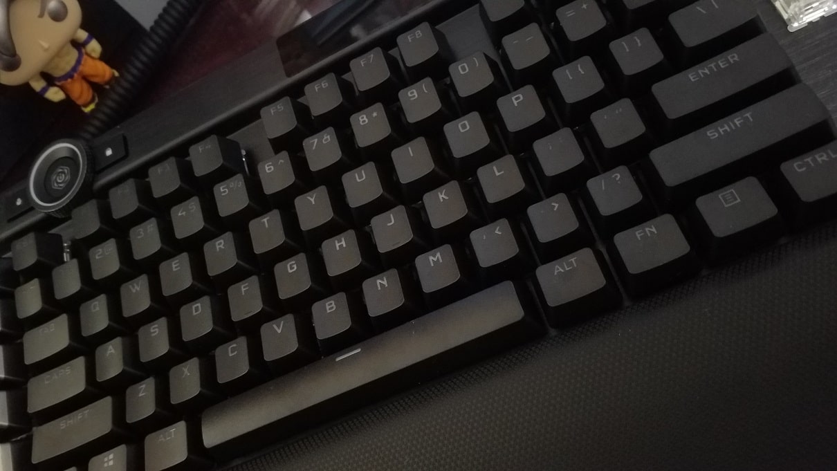 Para agregar aún más poder a la ecuación, el K100 viene con keycaps de polibutileno (PBT); una aleación comúnmente usada en el pasado para la construcción de tuberías de agua de alta presión. Esto es sinónimo de mayor calidad, durabilidad y resistencia. Adicional a esto, el hecho de utilizar un polímero más duro permitió a CORSAIR crear superficies de choque dentro de la tecla mucho más estrechas de lo normal, lo cual se refleja en un tecleo menos ruidoso y más agradable de lo que usualmente escuchamos en teclados pesados con switches lineares.