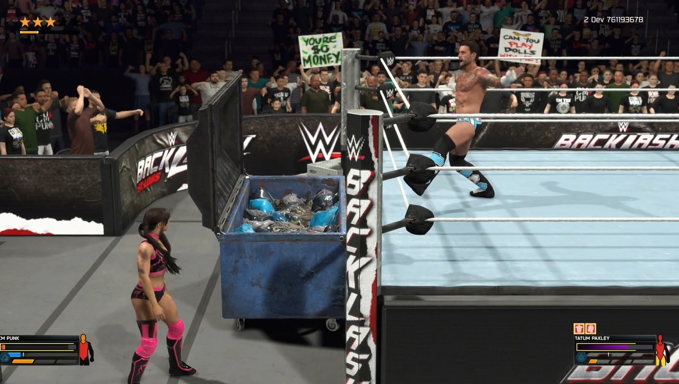 Para empezar, las entradas de los luchadores lucen mejoradas y con más detalles realistas que su antecesor; el público tiene más presencia e interacción en la animación dependiendo del luchador. Por ejemplo, en la entrada de Gunther, se puede escuchar al público haciéndole boo, y ya todos sabemos que esto está pasando actualmente en los shows en vivo por los retiros recientes de John Cena y AJ Styles a manos de Gunther.